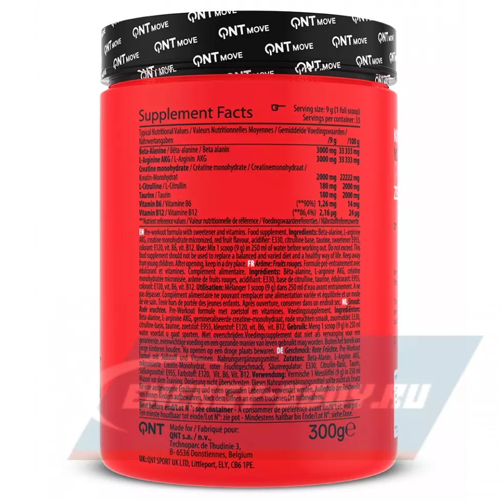 Ингредиенты: бета-аланин, L-аргинин AKG, микронизированный моногидрат креатина, инулин, ароматизатор со вкусом красных фруктов, подкислитель: E330, цитруллиновая основа, подсластитель: E955, краситель: E120, витамин В6, витамин В12.