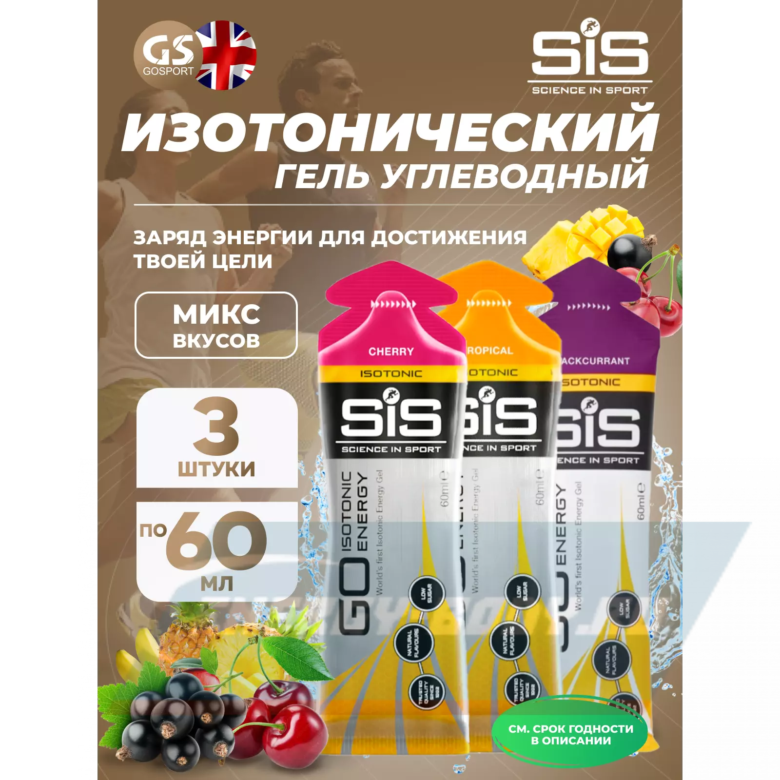 GO Isotonic Energy Gels 3 x 60 мл, Микс №2