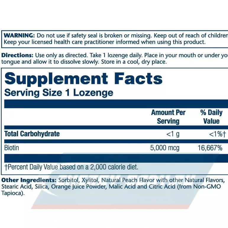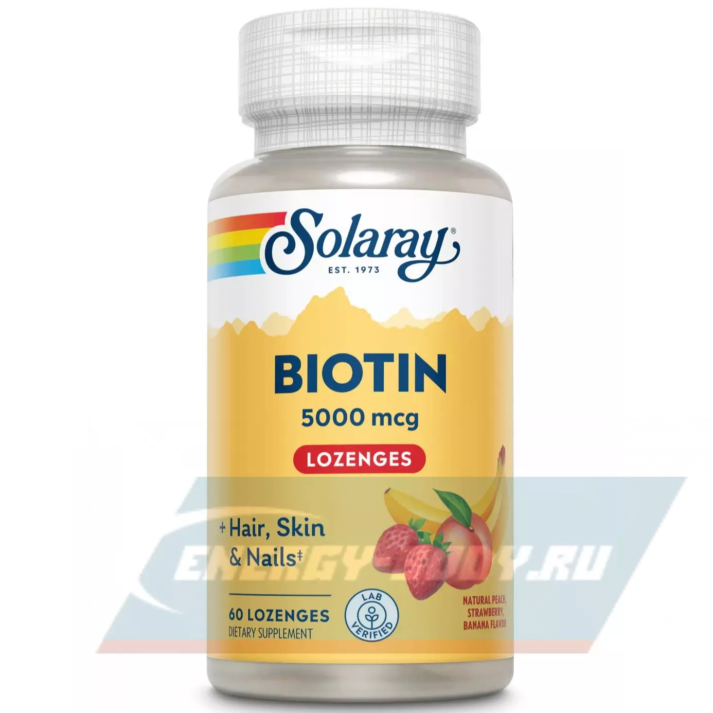 Biotin Lozenge 5000 mcg 60 конфет, Персик - Клубника - Банан