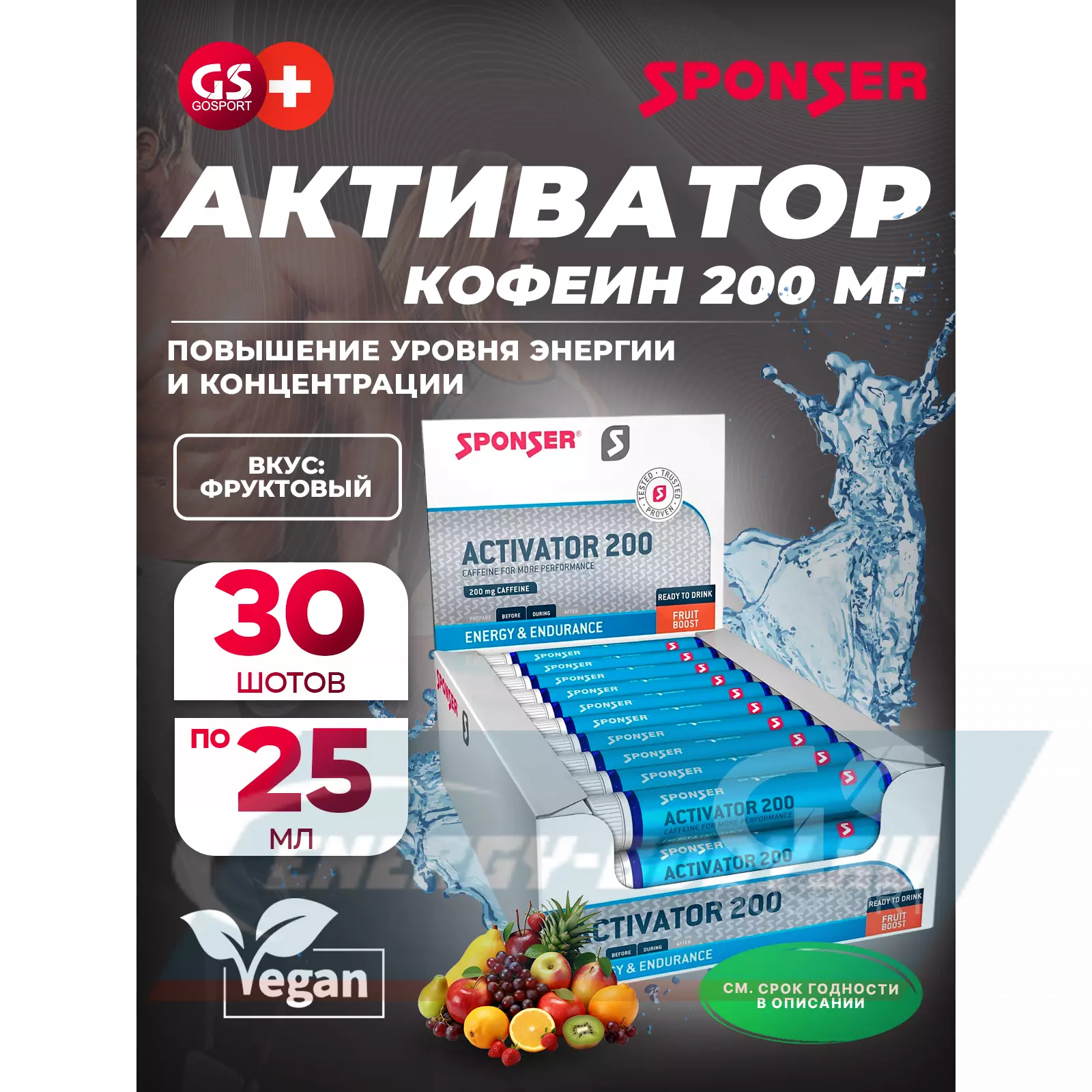 ACTIVATOR 200 Caffein 30 шотов x 25 мл, Фруктовый