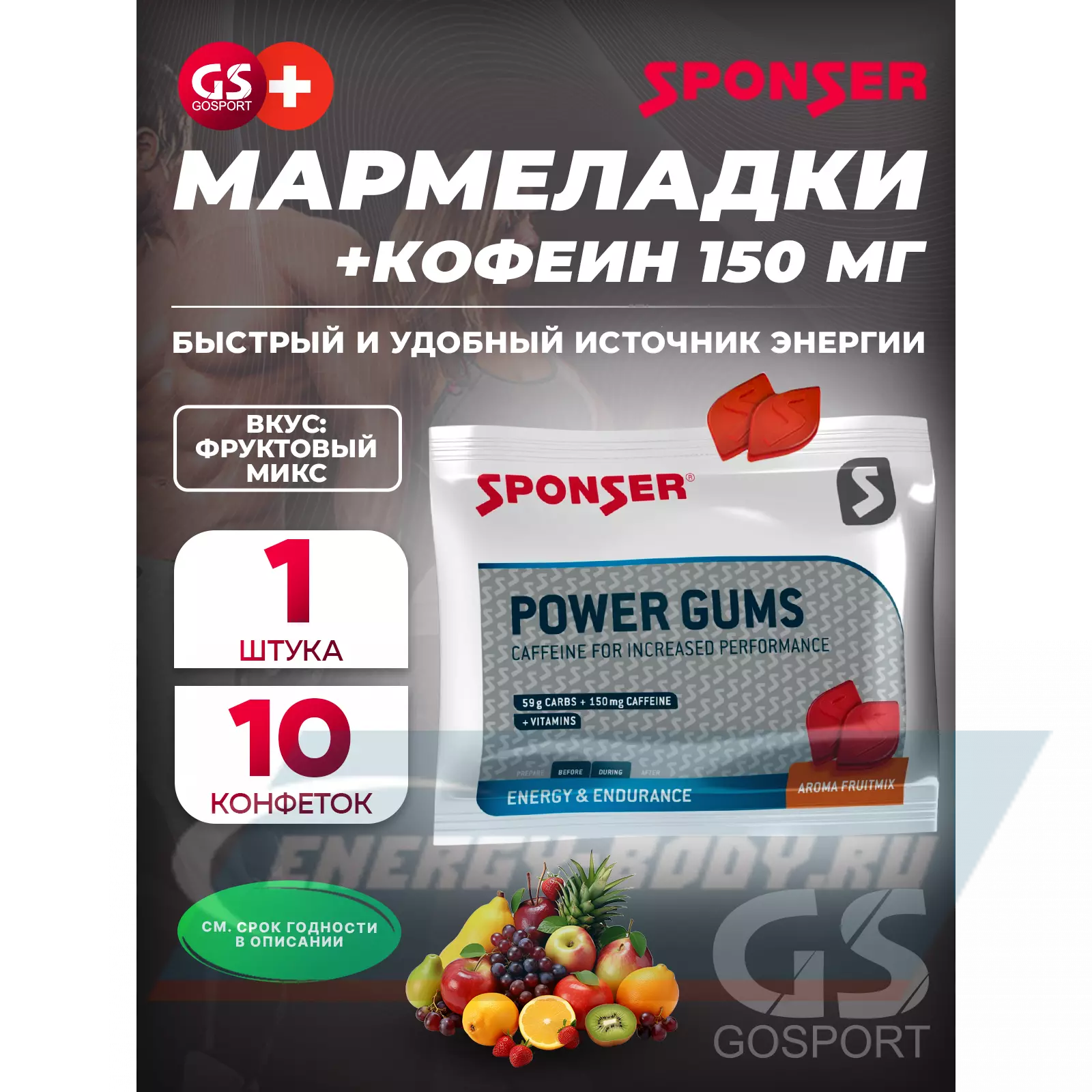 SPONSER RED POWER GUMS + кофеин 150mg 10 конфет, Фруктовый микс — Быстрый и удобный источник энергии