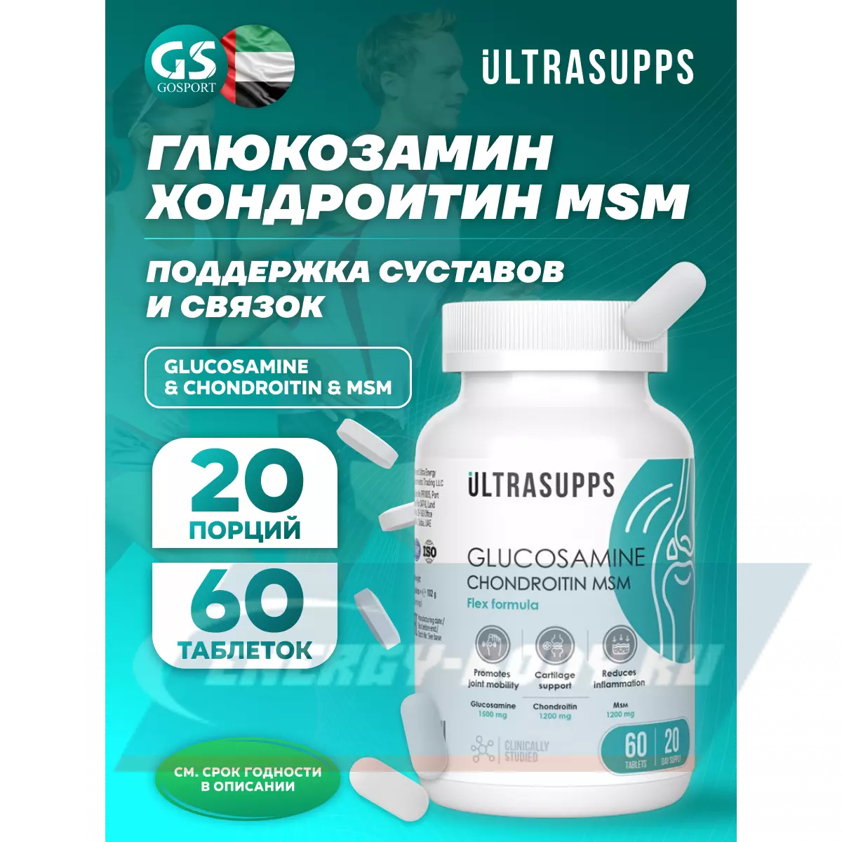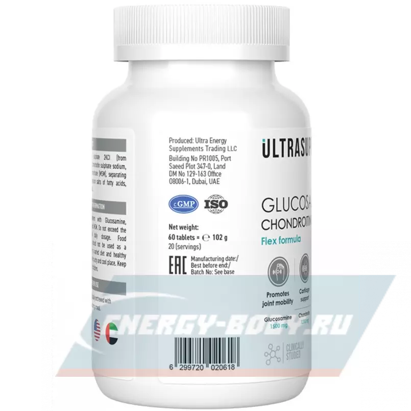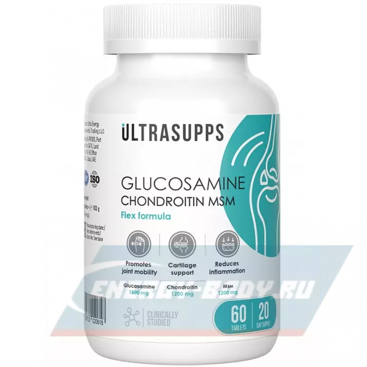 Компоненты, входящие в состав комплекс Glucosamine & Chondroitin & MSM от компании Ultrasupps способствуют восстановлению поврежденных соединительных тканей суставов и поддержанию их здоровой подвижности и эластичности. Глюкозамин помогает сохранить хорошее состояние хрящей, хондроитин важен для суставной оболочки и хрящевой ткани, а MSM обладает противовоспалительными свойствами.