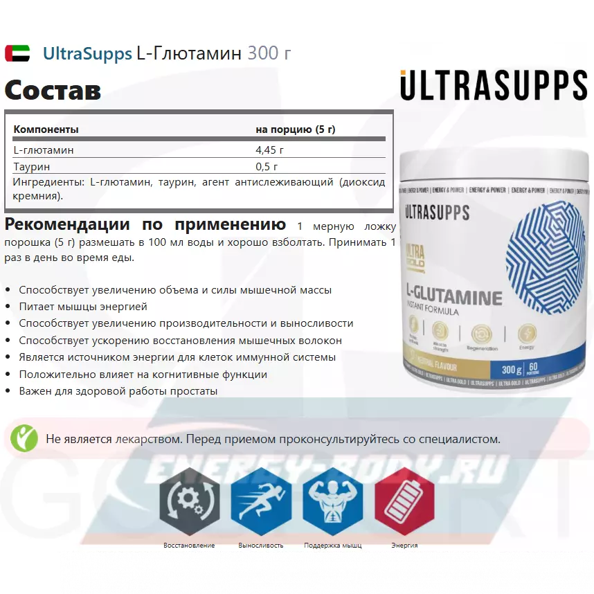 - Полное описание Ultra Gold L-Glutamine