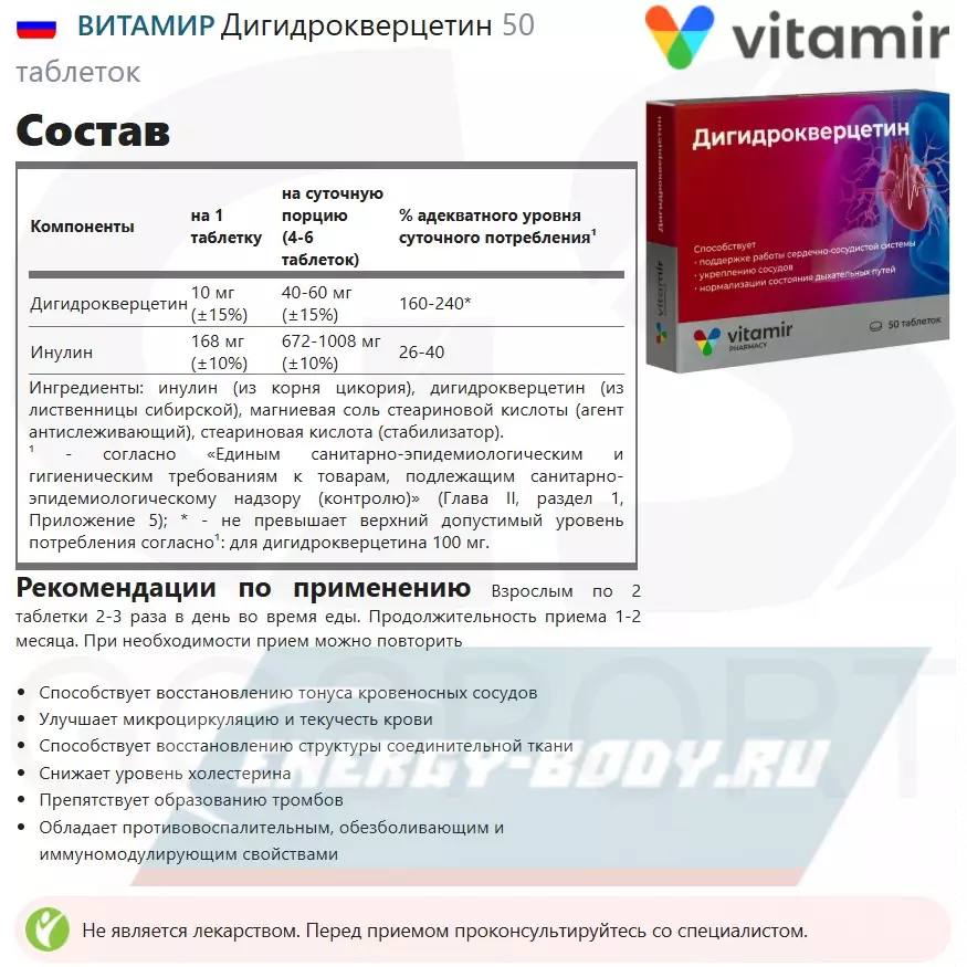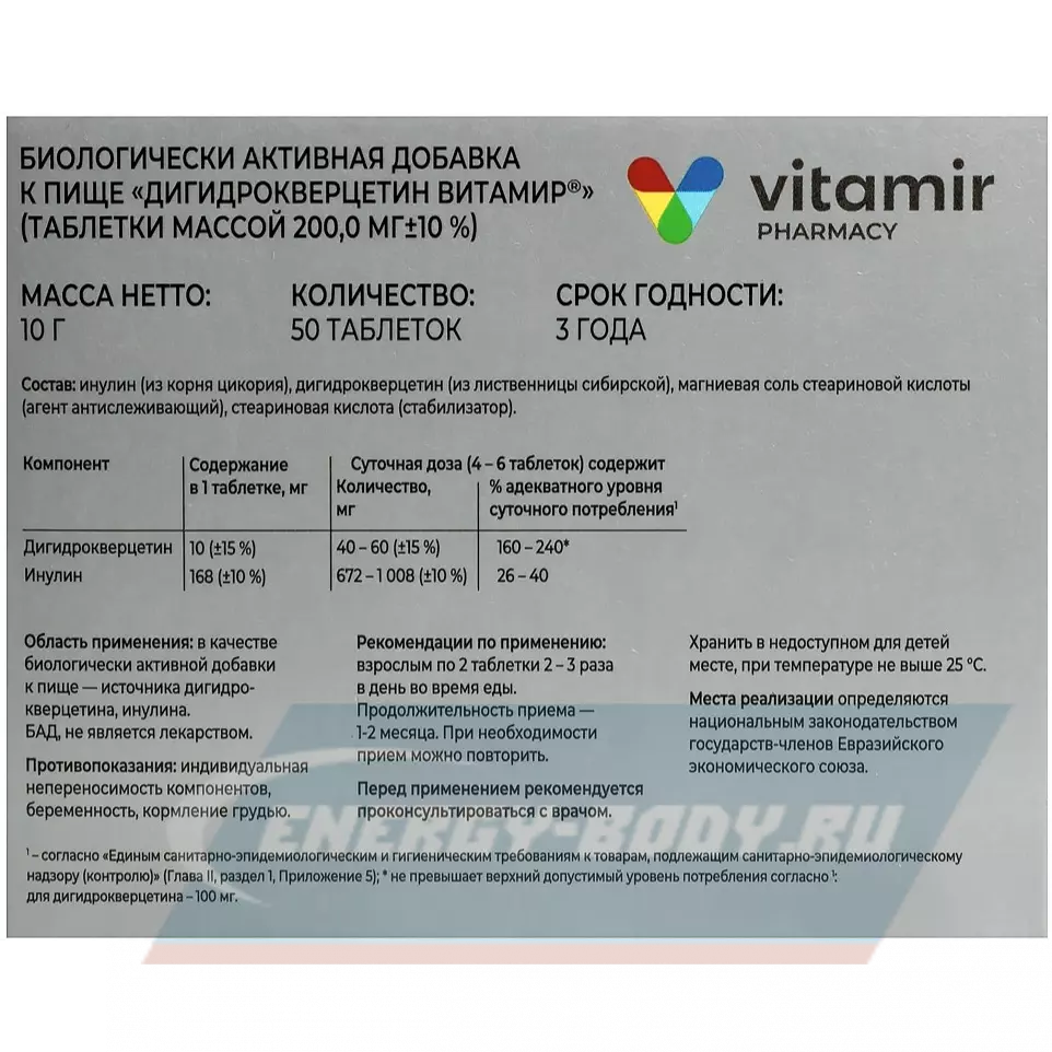 Состав ВИТАМИР Дигидрокверцетин