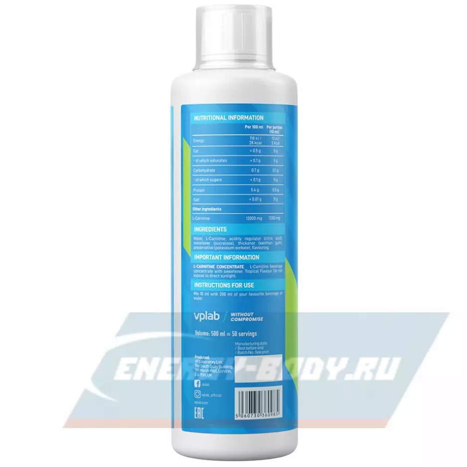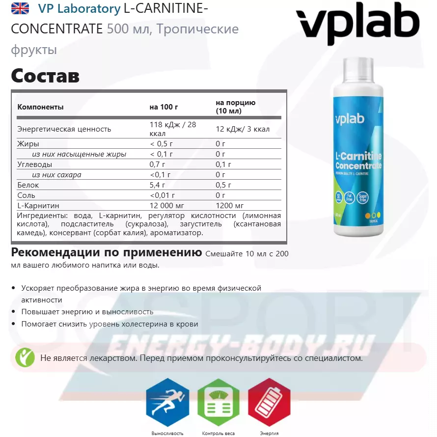 VP Laboratory L-CARNITINE-CONCENTRATE 500 мл, Тропические фрукты — для жиросжигания и энергии