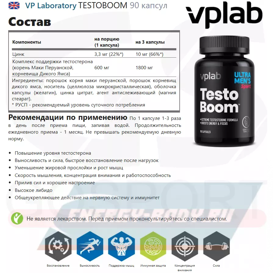 Testoboom могут принимать как мужчины, так и женщины для стимулирования мышечного тонуса, построения мышечной массы, повышения качества сексуальной жизни и увеличения спортивных показателей.