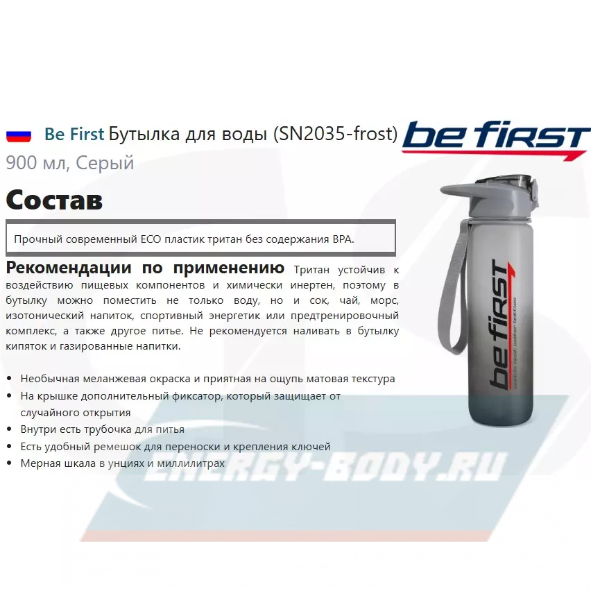 Бутылка Be First емкостью 900 мл из прочного тритана с удобным питьевым носиком и трубочкой – поможет утолить жажду в любое время.