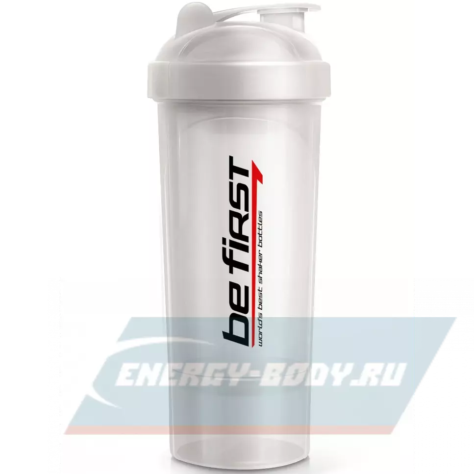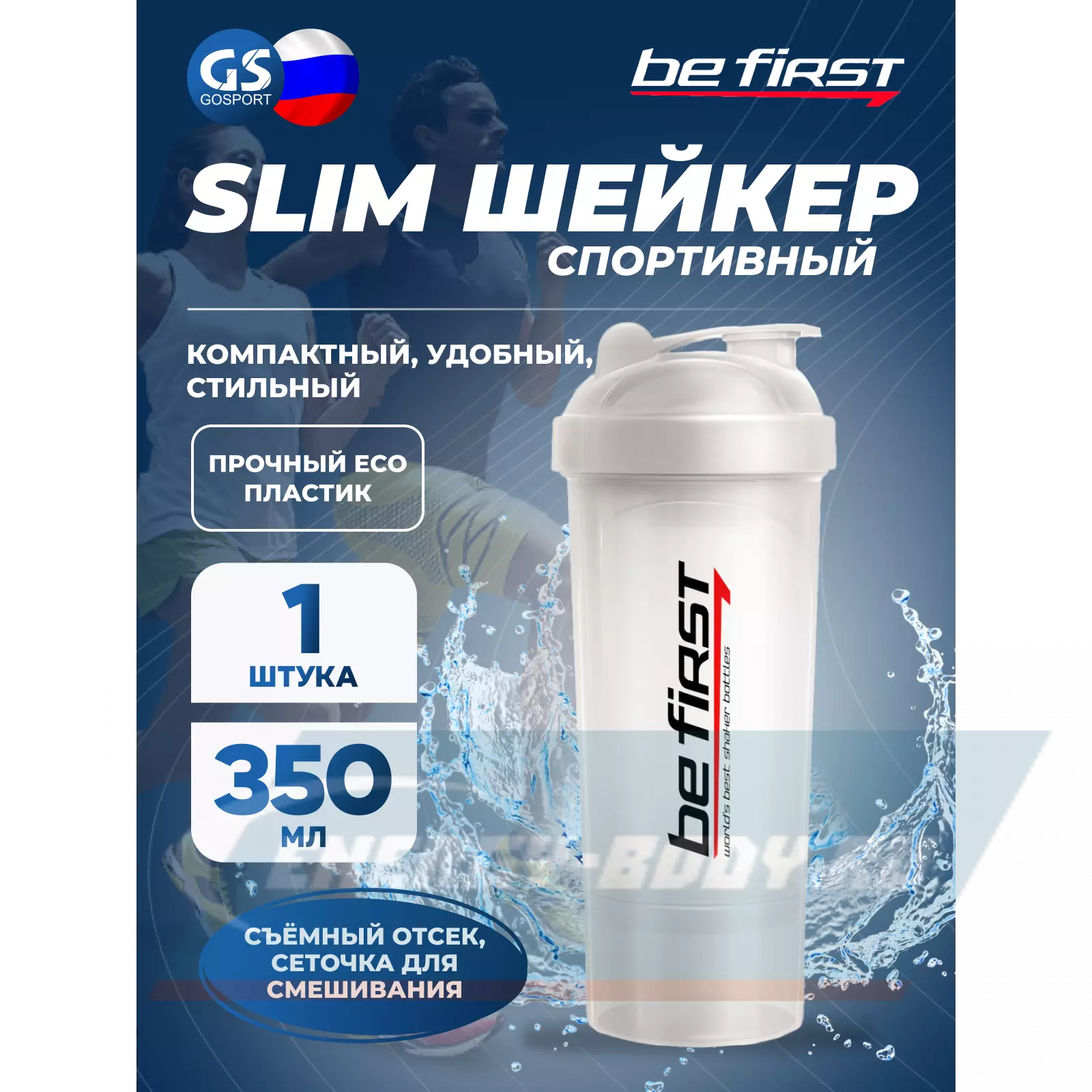 Очень изящный спортивный шейкер Be First удобного компактного размера объемом 350 мл. Корпус тонкий (или, точнее узкий) — даже самой хрупкой даме будет удобно держать его в руке. Полупрозрачный — уровень жидкости будет видно (и для этого есть мерная шкала), а вот что там намешано — останется Вашим секретом. Пластиковых шейкер выпускается в вариантах насыщенных ярких расцветок. Крышка округлая, на резьбе, с удобным небольшим носиком овальной формы. Носик закрывается жесткой защелкивающейся крышечкой, закрепленной на крышке шейкера, так что она не потеряется. Несмотря на то, что носик не имеет резьбы, закрывается он очень плотно — ничего не прольется.