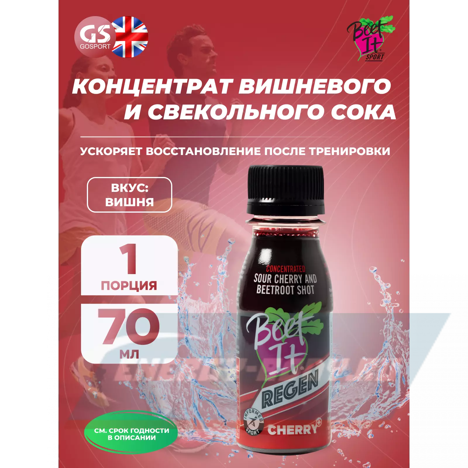 - Шоты Beet It Regen Cherry+ содержат концентрат вишневого сока (58%) и концентрат свекольного сока (42%) в удобном готовом к употреблению формате объемом 70 мл.