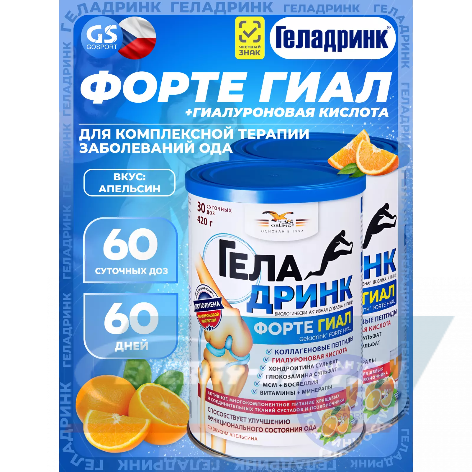 ГЕЛАДРИНК ФОРТЕ (Geladrink Forte) ГИАЛ 2 х 420 г, Апельсин — Для подвижности и гибкости суставов