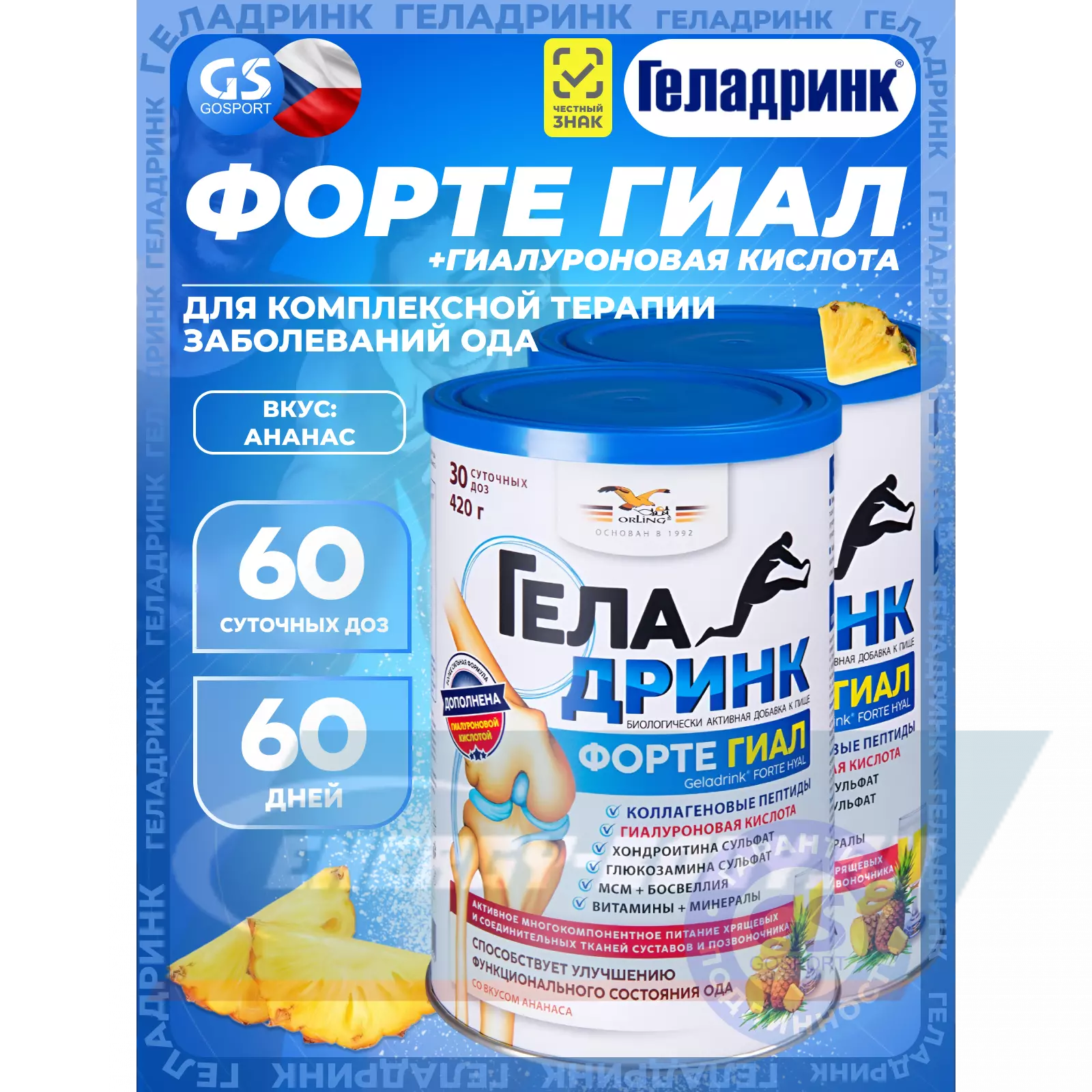 ГЕЛАДРИНК ФОРТЕ (Geladrink Forte) ГИАЛ 2 х 420 г, Ананас — Для подвижности и гибкости суставов
