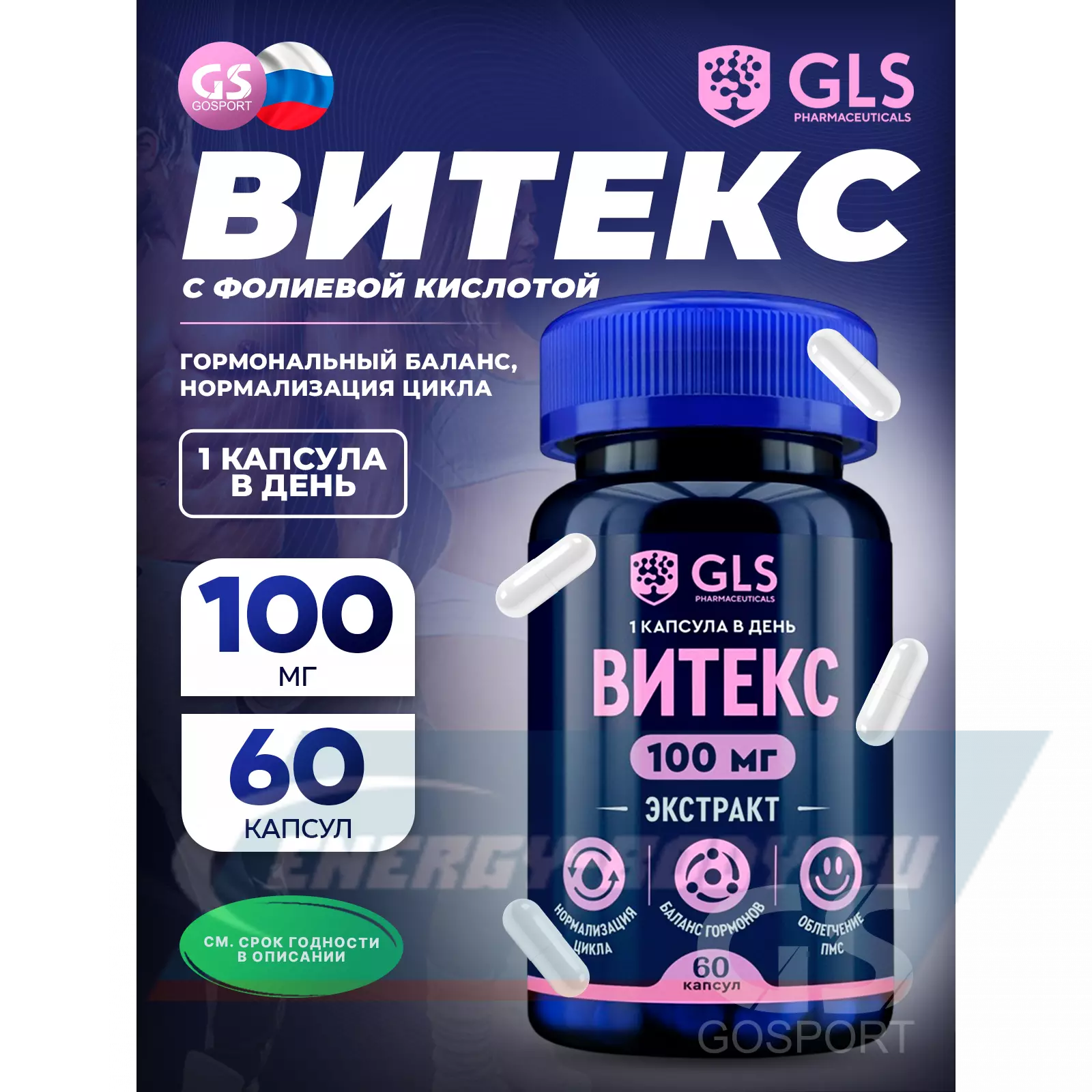 GLS pharmaceuticals Витекс (экстракт) 100 мг с фолиевой кислотой 60 капсул — Для баланса гормонов