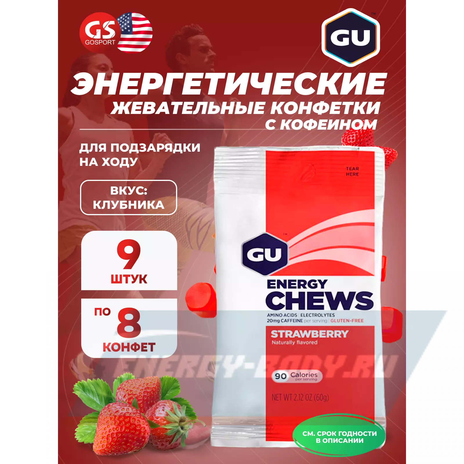 GU Energy Labs Мармеладки GU Energy Chews 9 x 60 г, Клубника — Быстрое и длительное снабжение энергией