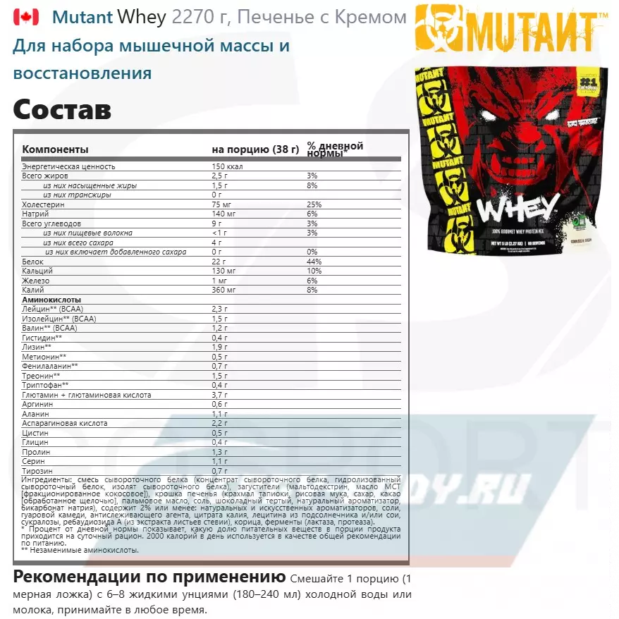 - Протеин MUTANT WHEY со вкусом клубничного крема, предназначен для роста крепких мышц, на 100% лучше, чем любой обычный сывороточный протеин. Рецептура MUTANT WHEY не сравнима ни с чем, что вы пробовали раньше.