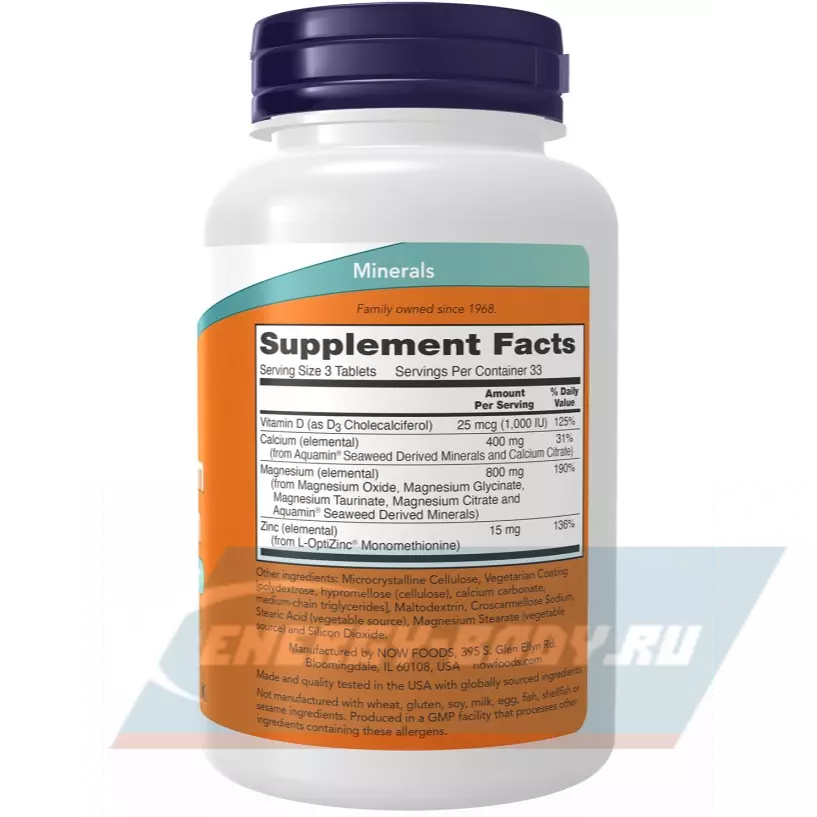 Состав NOW FOODS Magnesium Calcium with Zinc and Vitamin D3