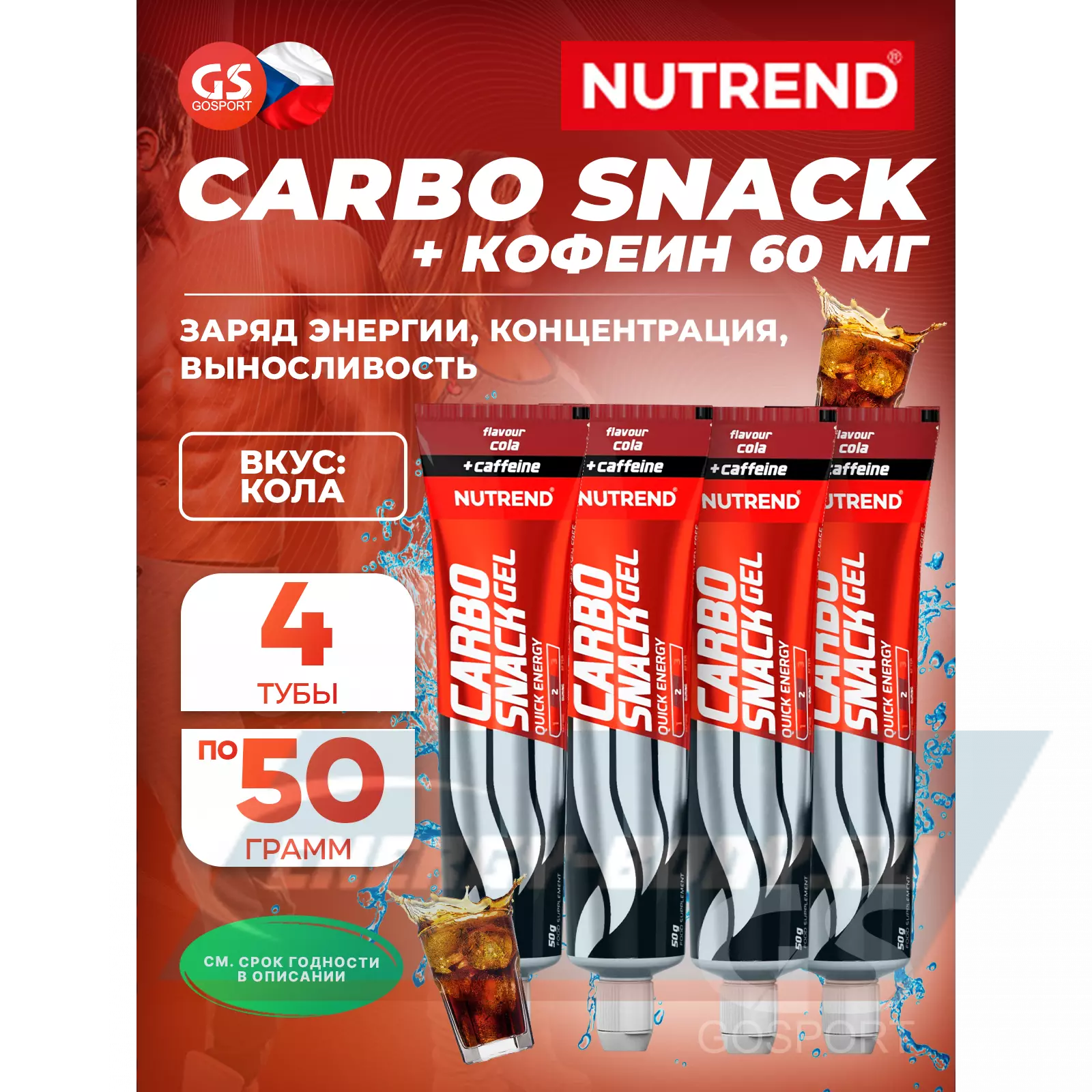 Carbosnack 60mg caffeine туба 4 шт x 50 г, Кола