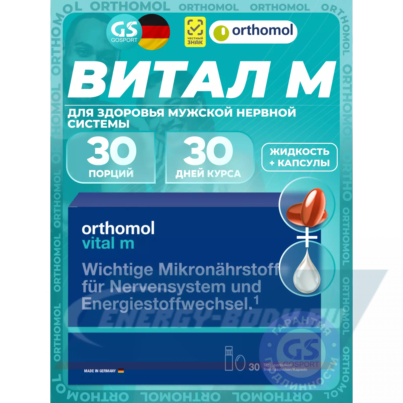 Orthomol Vital m liquid (жидкость+капсулы) курс 30 дней — Для здоровья мужской нервной системы