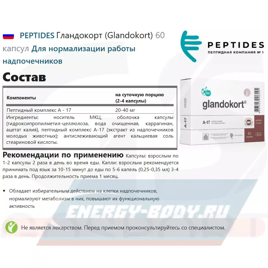 PEPTIDES Гландокорт (Glandokort) 60 капсул — Для нормализации работы надпочечников