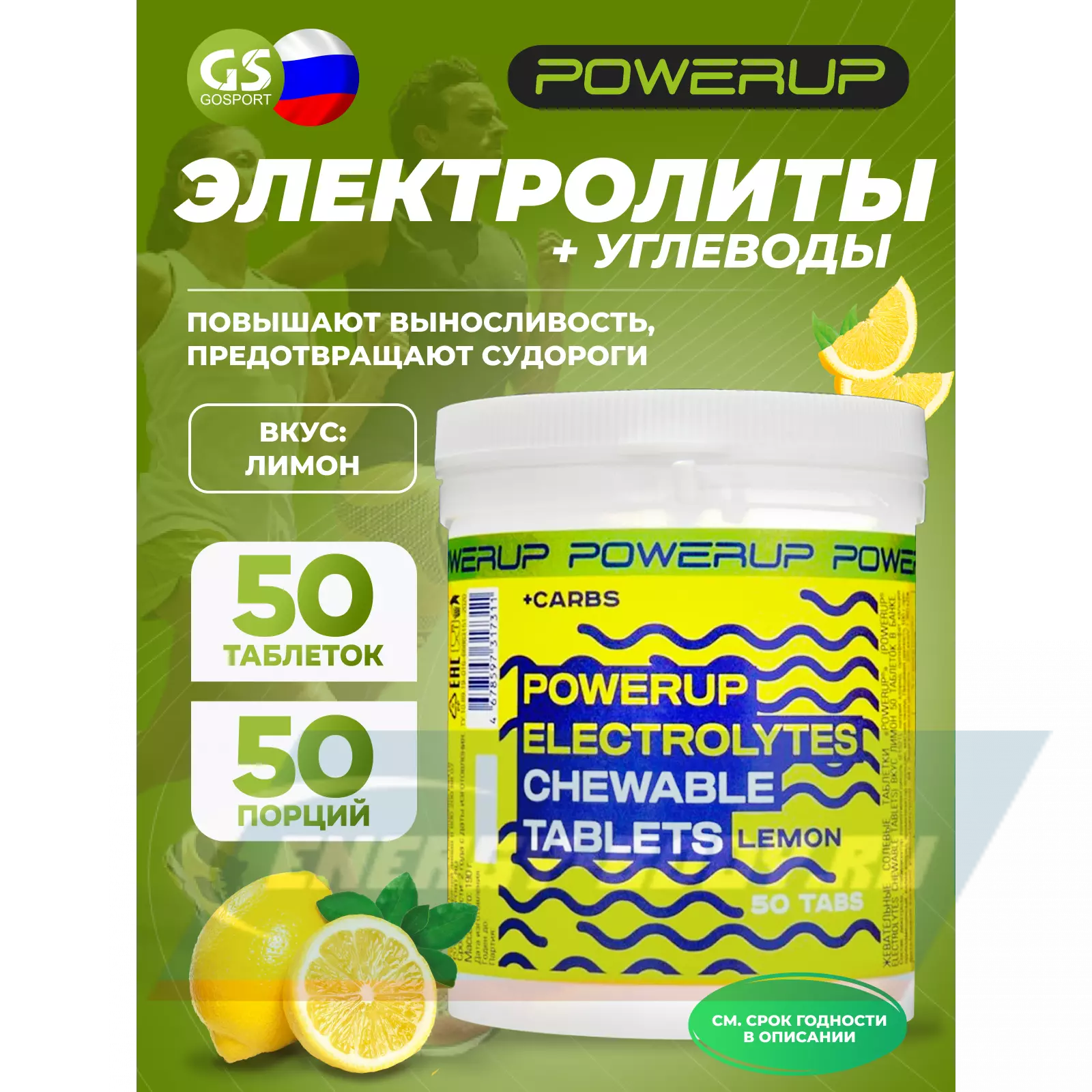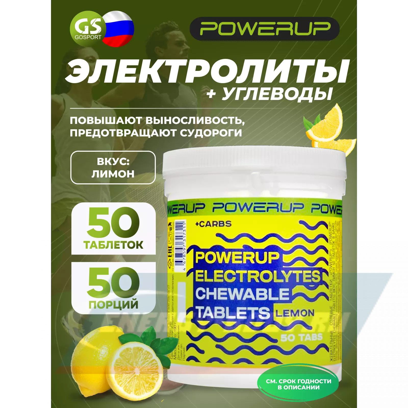 Powerup Electrolytes Chewable Tablets 50 таблеток, Лимон — Выносливость, восстановление и предотвращение судорог