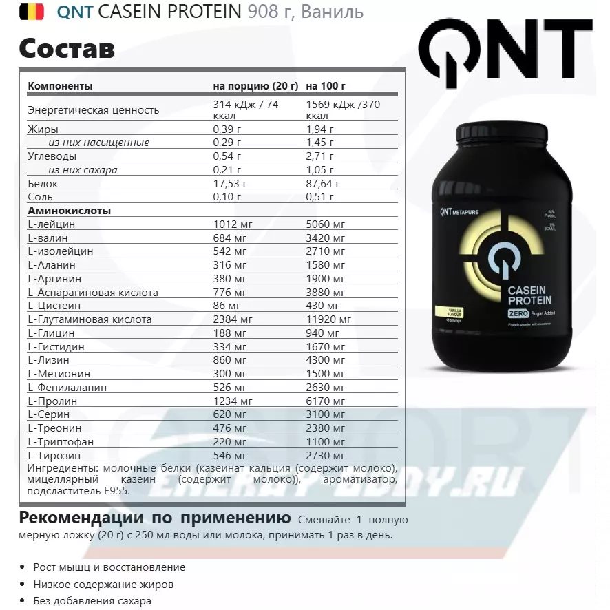 Состав QNT CASEIN PROTEIN