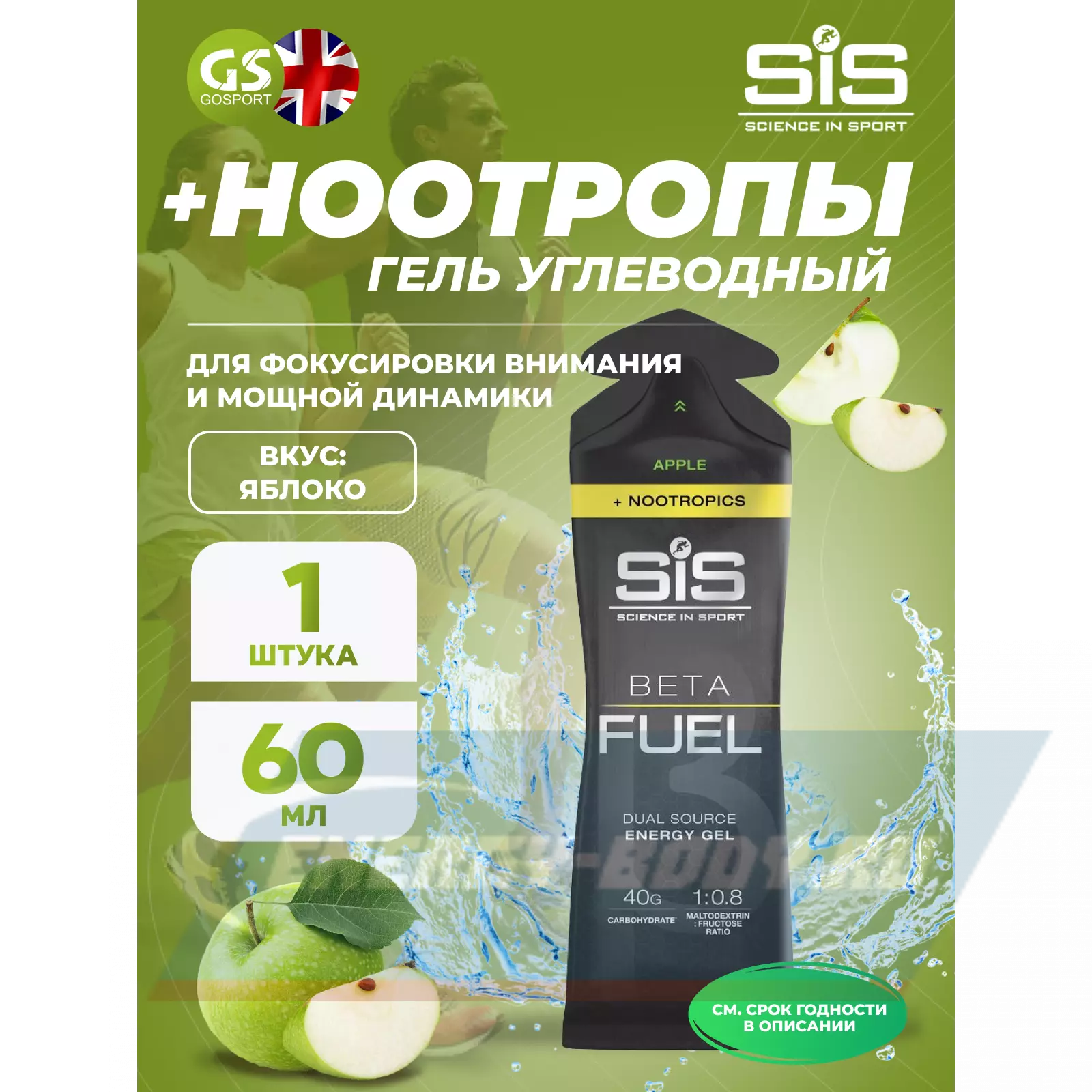 SCIENCE IN SPORT (SiS) BETA FUEL + Nootropics 60 мл, Яблоко — Выносливость и улучшение концентрации