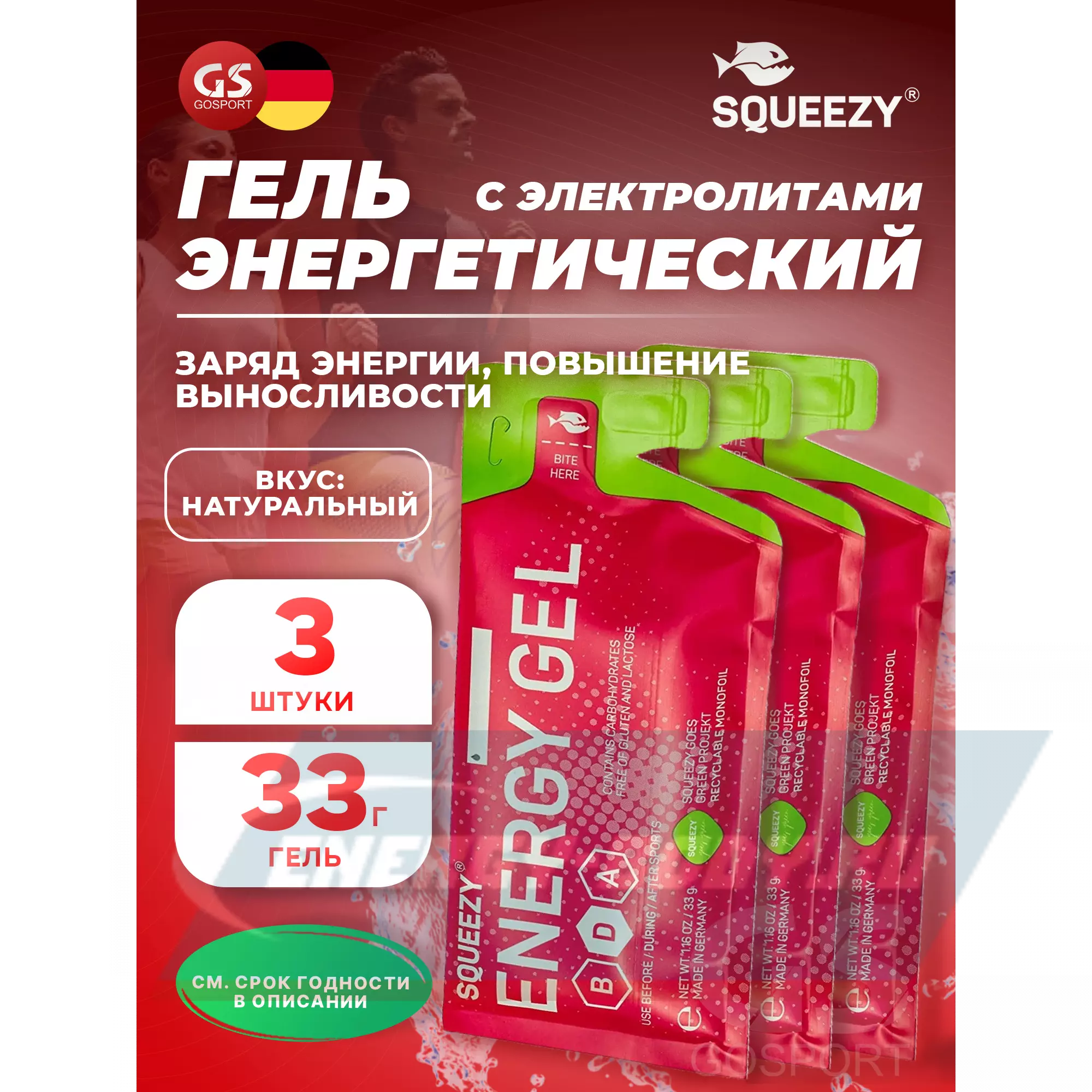SQUEEZY ENERGY SUPER GEL 3 x 33 г, Натуральный — Заряд энергии и повышение выносливости