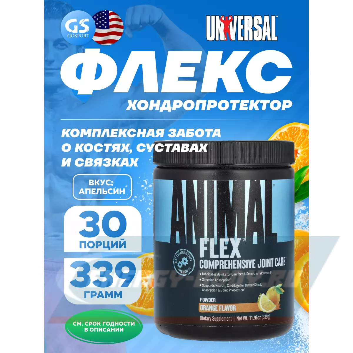 UNIVERSAL NUTRITION ANIMAL FLEX POWDER 339 г, Апельсин — Для поддержания здоровья суставов и связок